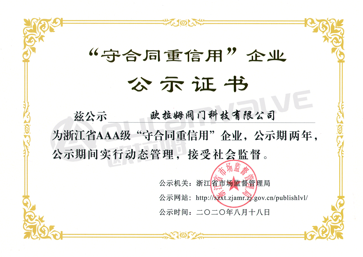 浙江省AAA級(jí)守合同重信用企業(yè)