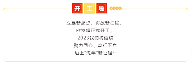 2月2日早上,歐拉姆董事長金志遠和總經理黃時然迎接各位員工復工返崗,給大家拜年,致以新春祝福。“大家新年快樂”,伴隨著喜慶的祝福聲,員工們紛紛送上了對公司新一年的祝福??偨浝斫o員工們發來了紅包“開年驚喜”,在一片熱鬧喜慶的氣氛中,歐拉姆人精神抖擻、蓄勢待發,向著新一年目標沖刺!